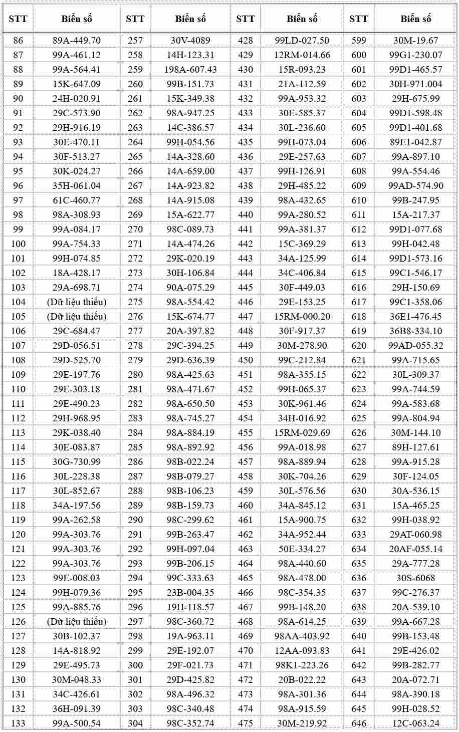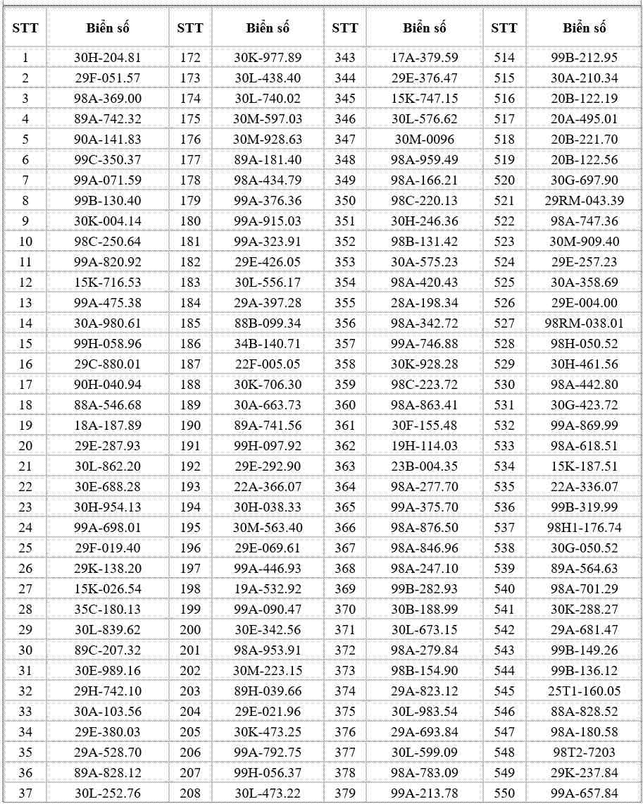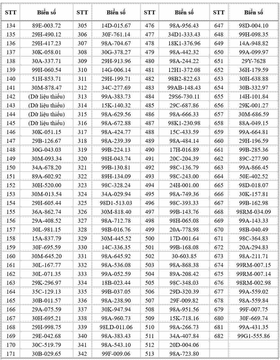 Danh sách cụ thể như sau: