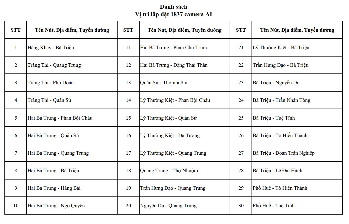 Công an Hà Nội vừa chính thức công bố danh sách chi tiết 1.837 vị trí lắp đặt hệ thống camera ứng dụng trí tuệ nhân tạo (AI) trên toàn địa bàn. Đây là một trong những bước đi quan trọng nhằm tăng cường công tác giám sát, xử lý vi phạm và nâng cao ý thức chấp hành pháp luật của người dân khi tham gia giao thông.
