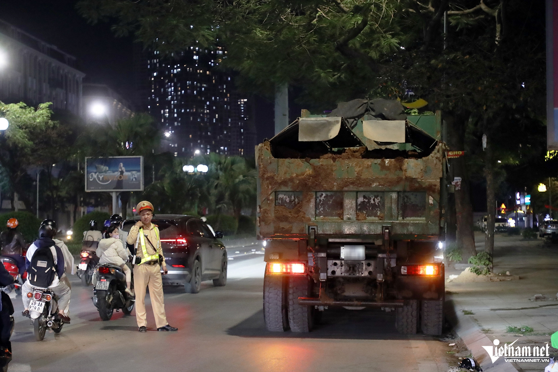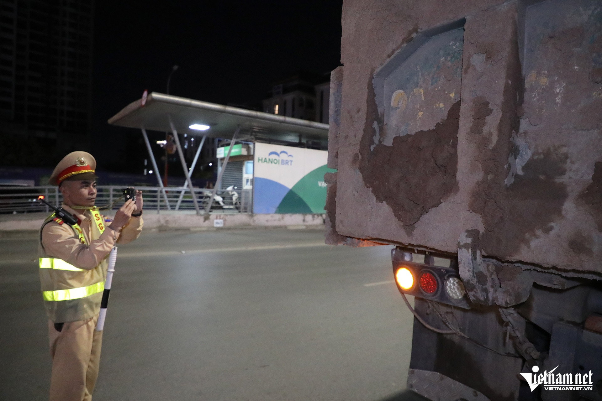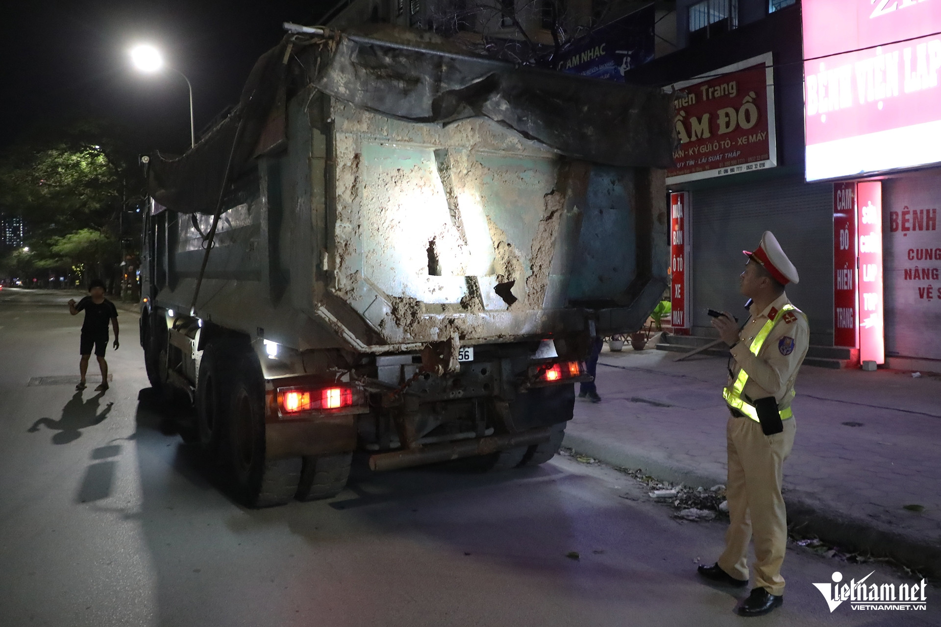 Khoảng 20 giờ cùng ngày, tổ công tác tiến hành dừng kiểm tra một xe tải mang biển kiểm soát 29H-308.XX do tài xế Lữ T.A. (sinh năm 1994, quê Thanh Hóa) điều khiển. Qua kiểm tra, cảnh sát phát hiện phần nắp sau thùng xe bám nhiều bùn đất, tiềm ẩn nguy cơ rơi vãi xuống mặt đường khi phương tiện lưu thông.